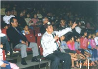 後半はミクル・ミュージカルカンパニーのミュージカル“がんばれダストバスターズ”の公演で最後まで子供全員が静かに見とれ、最後に劇団員と一緒に踊りだす子供が出るほどで、感動的にフェスティバルを締めくくることが出来ました。 |