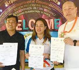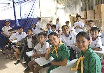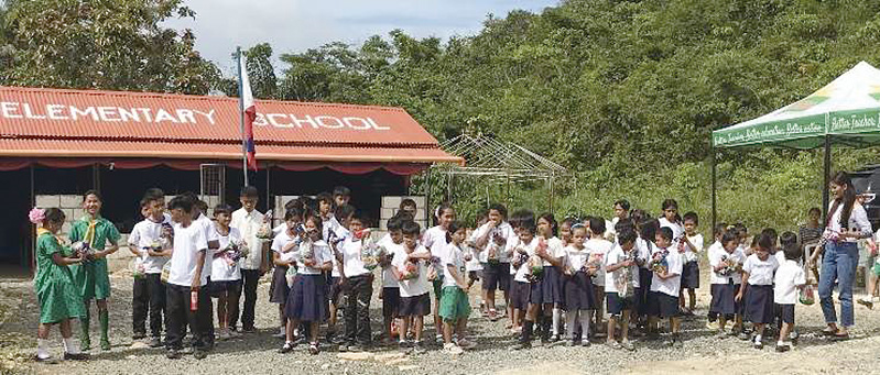 次に訪問したところは、さらに山を登ること約1時間、カルメン市の山奥にあるTaguini Elementary Schoolです。道路は舗装がなく、4WDの車が必要です。生徒は全部で67人。通学は徒歩で約2時間かかるそうです。先生はじめ、父兄の方々が総出で出迎えてくれました。この学校は、昨年の台風で建物が全壊。別の場所に移転し、ロータリー、フィリピン空軍、関係者の皆さんの協力で、ようやく再建したところです。ロータリーでは、水やトイレ設備を中心に支援しました。今後は安全な飲料水の確保が課題。次は浄水設備が必要となります。