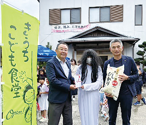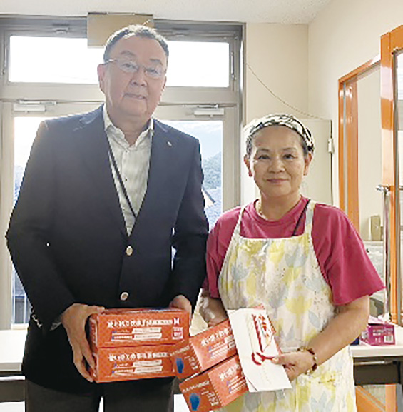 海南東ロータリークラブ(会長 田岡郁敏)は、社会奉仕委員会(委員長 田中淳)を中心に海南市のにこにこ食堂(10月10日 新規)、オナカスイータ〜ちいさな家〜(10月16日)、きうちこども食堂(10月19日)、子供食堂すこやか(10月25日 新規)、かえる食堂(11月14日予定 新規)と紀美野町のキノコ食堂(10月11日)をそれぞれ訪問し、活動の支援金、お米、要望のあった支援品を手渡しました。