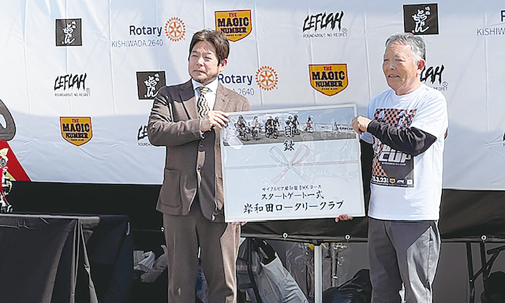 当クラブは、昨年70周年を迎え、その周年事業の一つとして岸和田市内にある「サイクルピア岸和田 BMXコース」に最新型のスタートゲートを贈呈し、『GANCUP』を協賛いたしました。BMXとは、Bicycle Motocross(バイシクルモトクロス)の略で、2020年の東京オリンピックの競技にも選ばれた自転車競技の一種です。