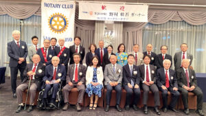 女性会員で茶道家が在籍されているということでお抹茶のお点前をいただきました。また、華道家でもあるため、例会では毎回お花を生けられており、とても和やかな例会を開催されています。また、地域ではパークゴルフ大会を主催されており奉仕活動に積極的なクラブです。