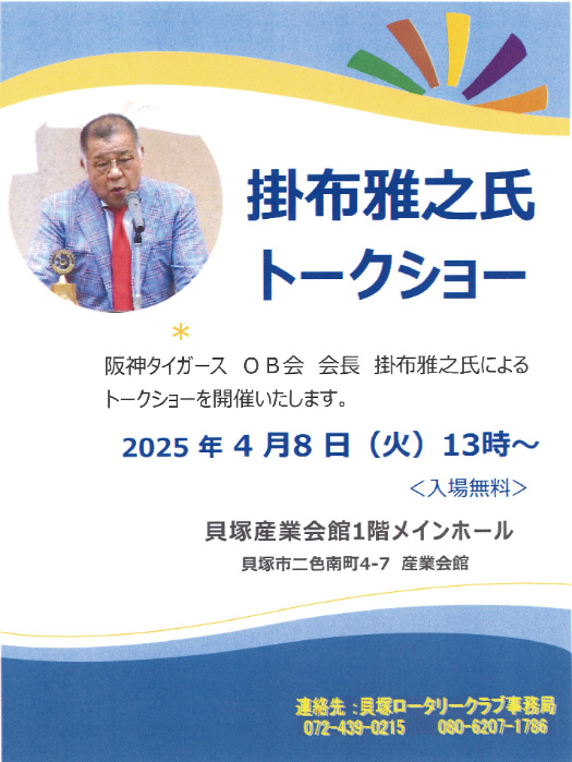 4月8日(火)に阪神タイガースOB会会長 掛布雅之氏をお招きし「藤川阪神の2025」と題して公開卓話としてトークショーを開催致しました。